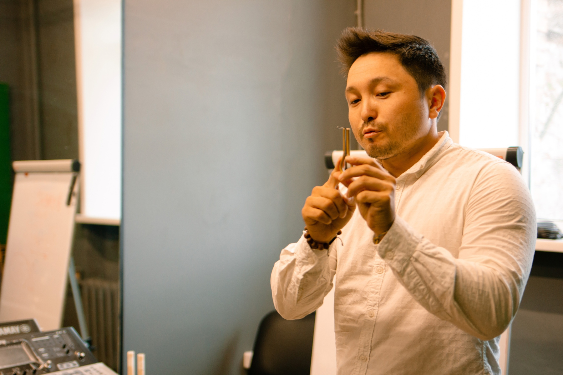 "И, о, лё, ю — основные звуки для игры на комусе. Важно правильно держать инструмент, правильно располагать руки, чтобы получить хороший звук. После постижения этих азов этот инструмент будет доступен для любого", — поделился музыкант, мультиинстументалист Шонкор Модоров.