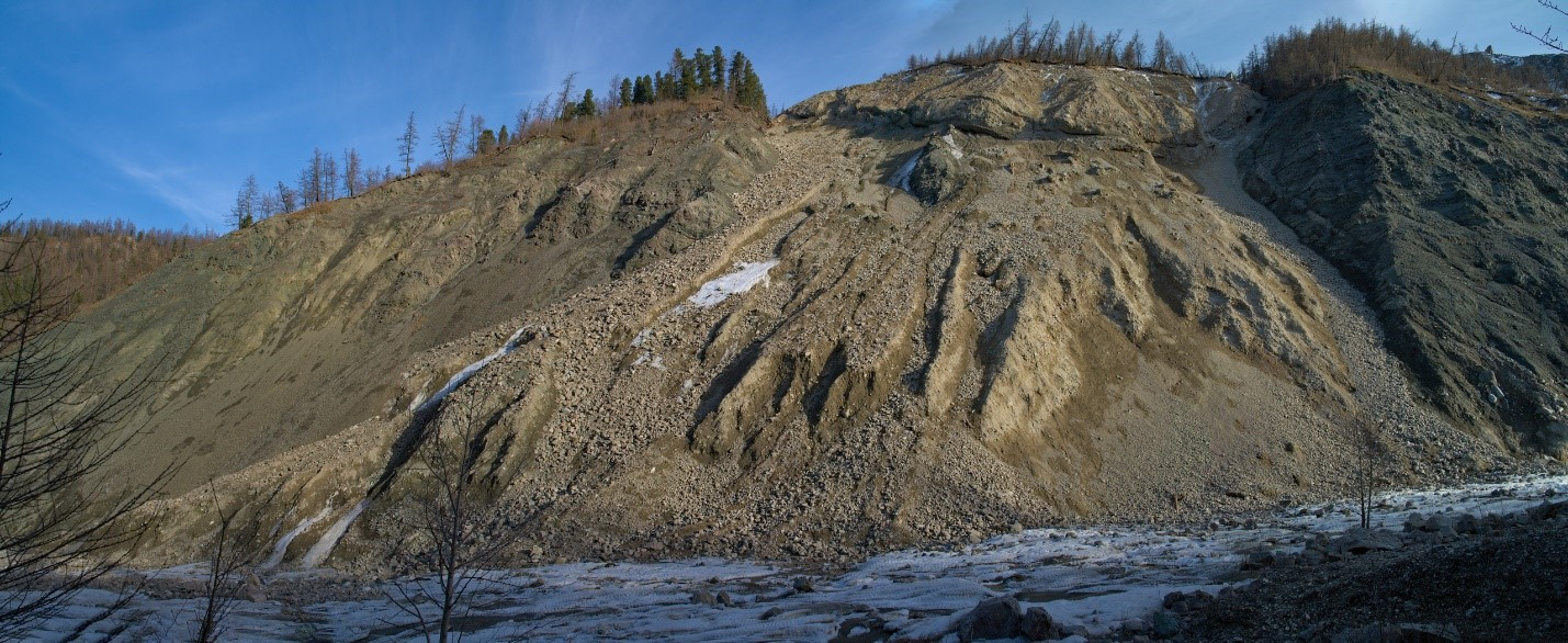 "Осыпь представляет опасность для всех туристов, посещающих район горы Мунку-Сардык. Активность этой осыпи связана с деятельностью уникального мерзлотно-каменного горного потока Активный. На основе этой проблемы, одному из участников, активисту клуба И. Гергенову определена предварительная тема научно-исследовательской работы под названием "Природные опасности на туристических маршрутах в районе горного массива Мунку-Сардык и защита от них", - делится результатами руководитель научных исследований С.Н. Коваленко.