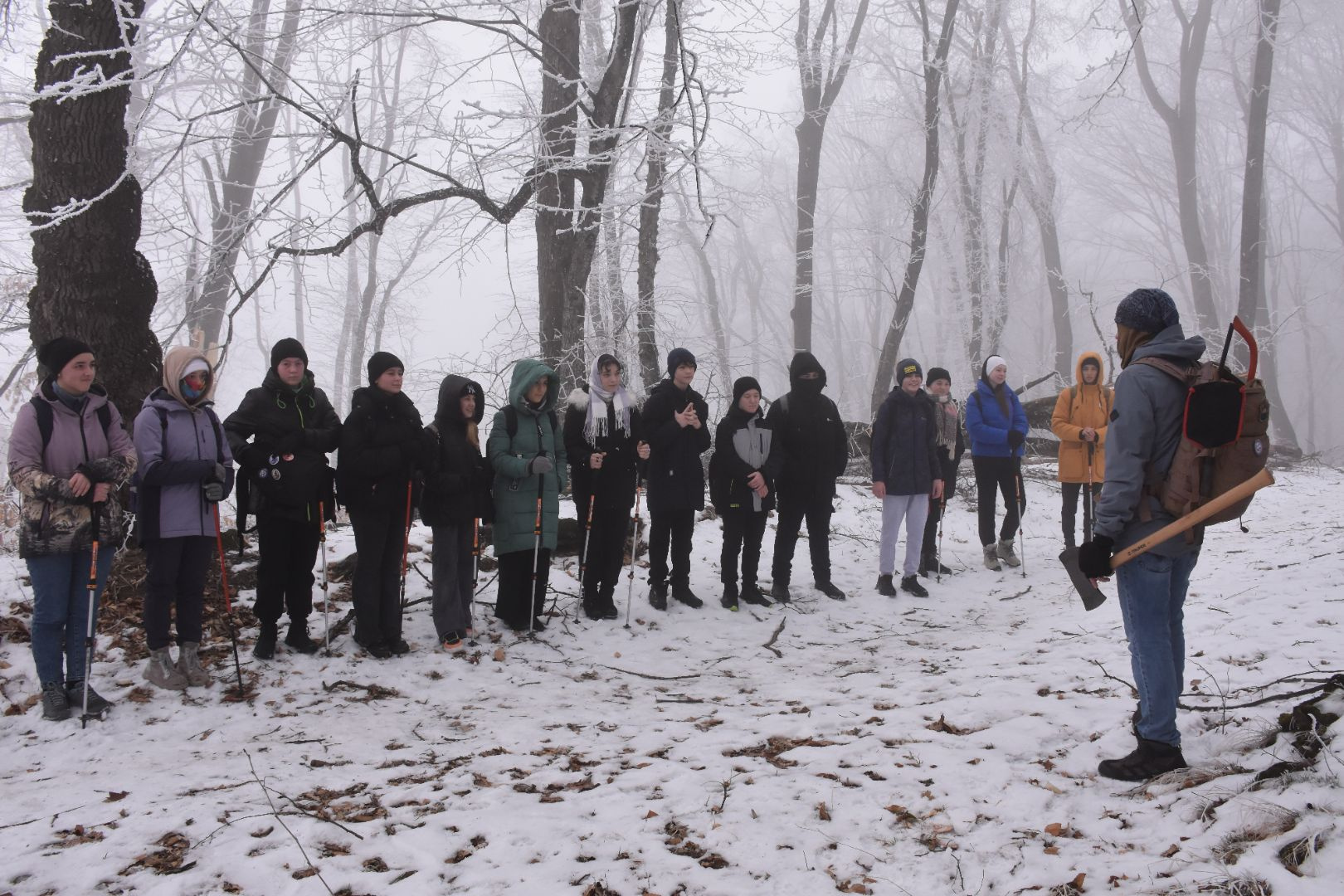 Активисты Молодежного клуба РГО "Альтаир" провели традиционный зимний поход на высшую точку над Нальчиком - гору Нартия, на высоту 999 метров над уровнем моря. Помимо туристско-краеведческой составляющей похода ребята расчистили тропу от поваленных накануне деревьев, обновили выцветшую на деревьях маркировку маршрута.